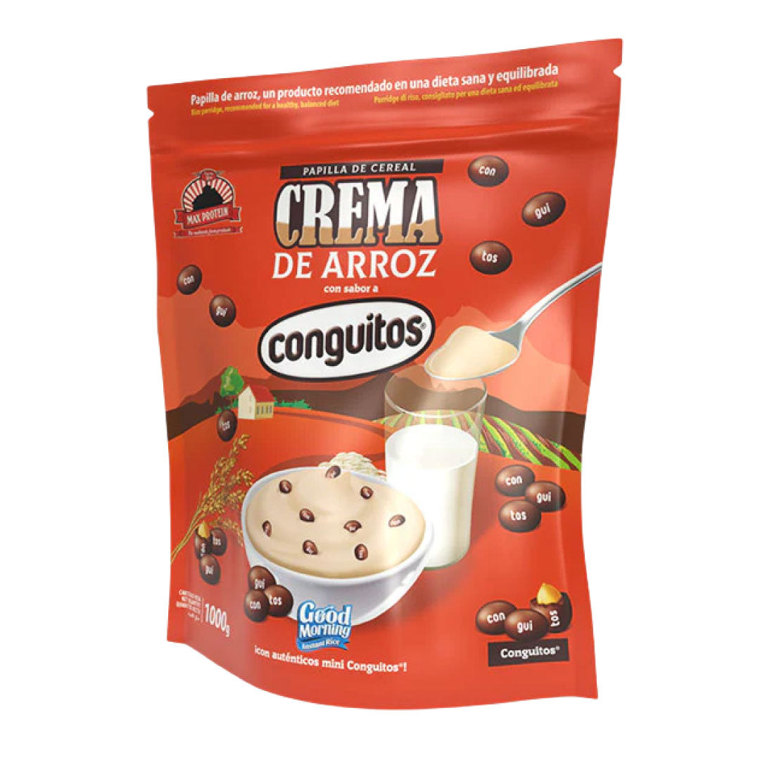 Nueva CREMA DE ARROZ Good Morning Instant Rice sabor CONGUITOS®, una suave papilla de arroz elaborada con harina de arroz nativa de alta calidad y auténticos mini Conguitos®. Ahora podrás disfrutar de tus desayunos y meriendas #PorqueSí con la auténtica Crema de arroz sabor Conguitos® de Max Protein®.